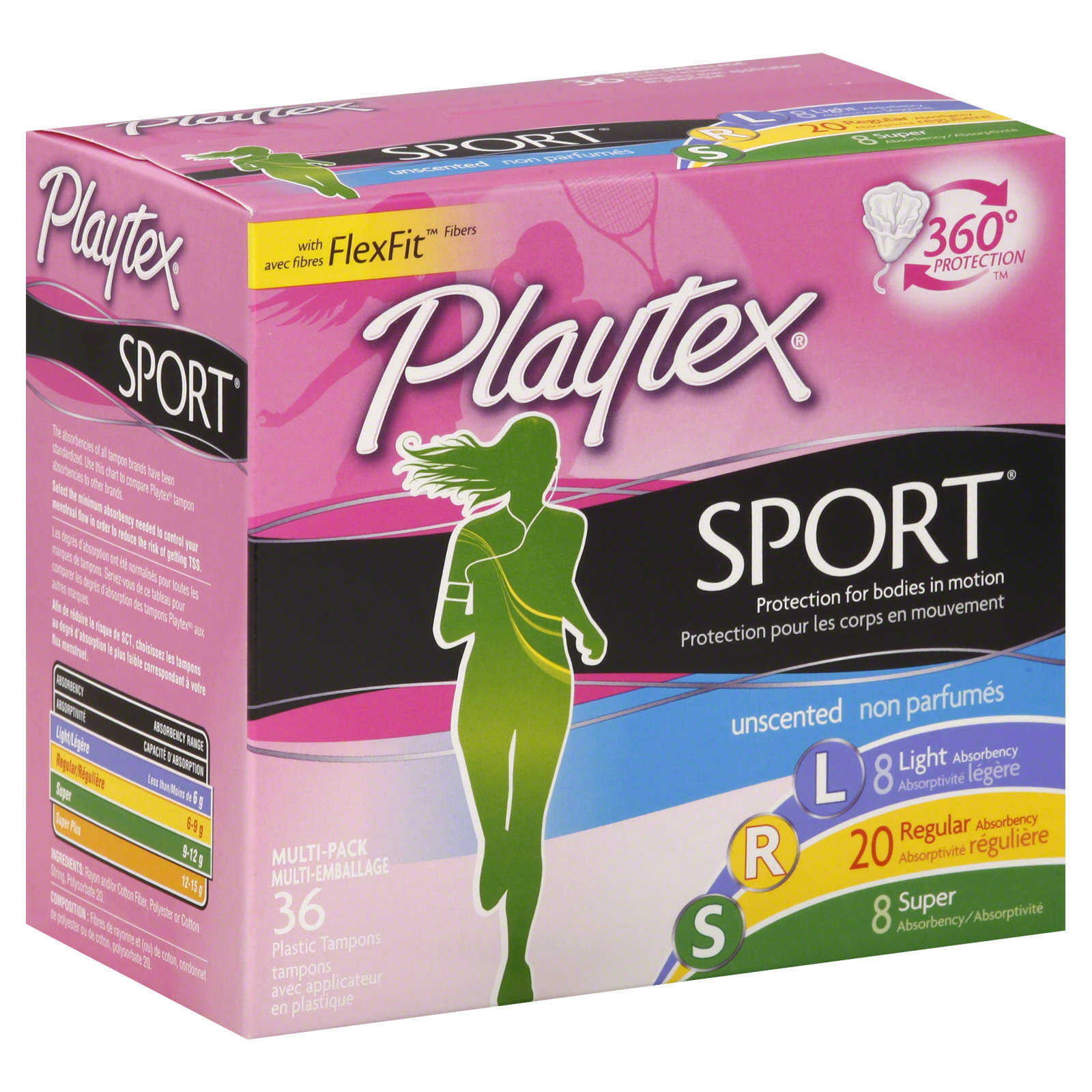 Playtex Sport Unscented Tampons, Light/Regular/Super, 36ct ...